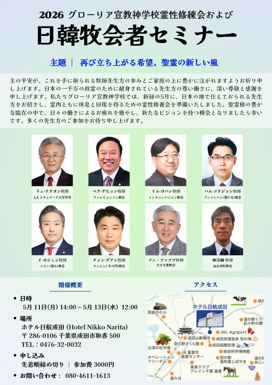 牧会の働きが、孤独で辛い道ではなく、神の人達が美しく協力し合うグローリア宣教神学校を目指しております。